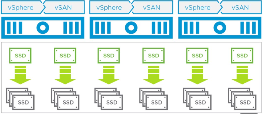 물리적인 디스크를 이용하여 하나의 Datastore라는 형태의 소프트웨어 계층의 스토리지로 구성하여 사용할 수 있도록 하는 기술입니다.