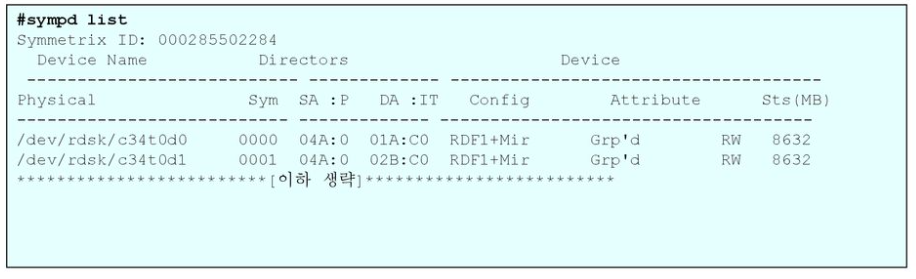 symmpd list 경우 Local host에 할당된 Volume 만 보여주며, symdev list 명령어와 동일하다.